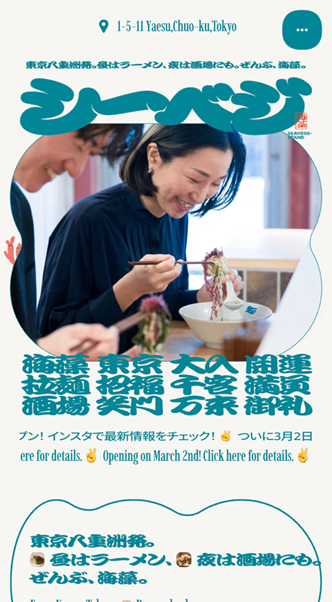 シーベジスタンド | 昼はラーメン、夜は酒場にも。ぜんぶ、海藻。